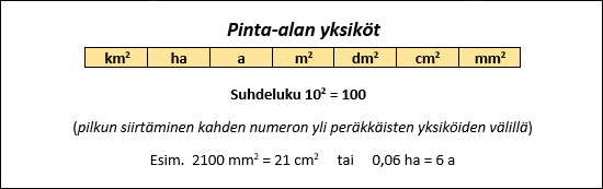 pinta-alan yksiköiden muuntamista