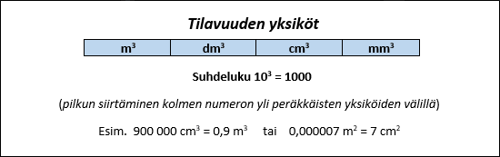 tilavuuden yksiköiden muuntamista
