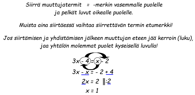 Yleisohje yhtälön ratkaisemiseen